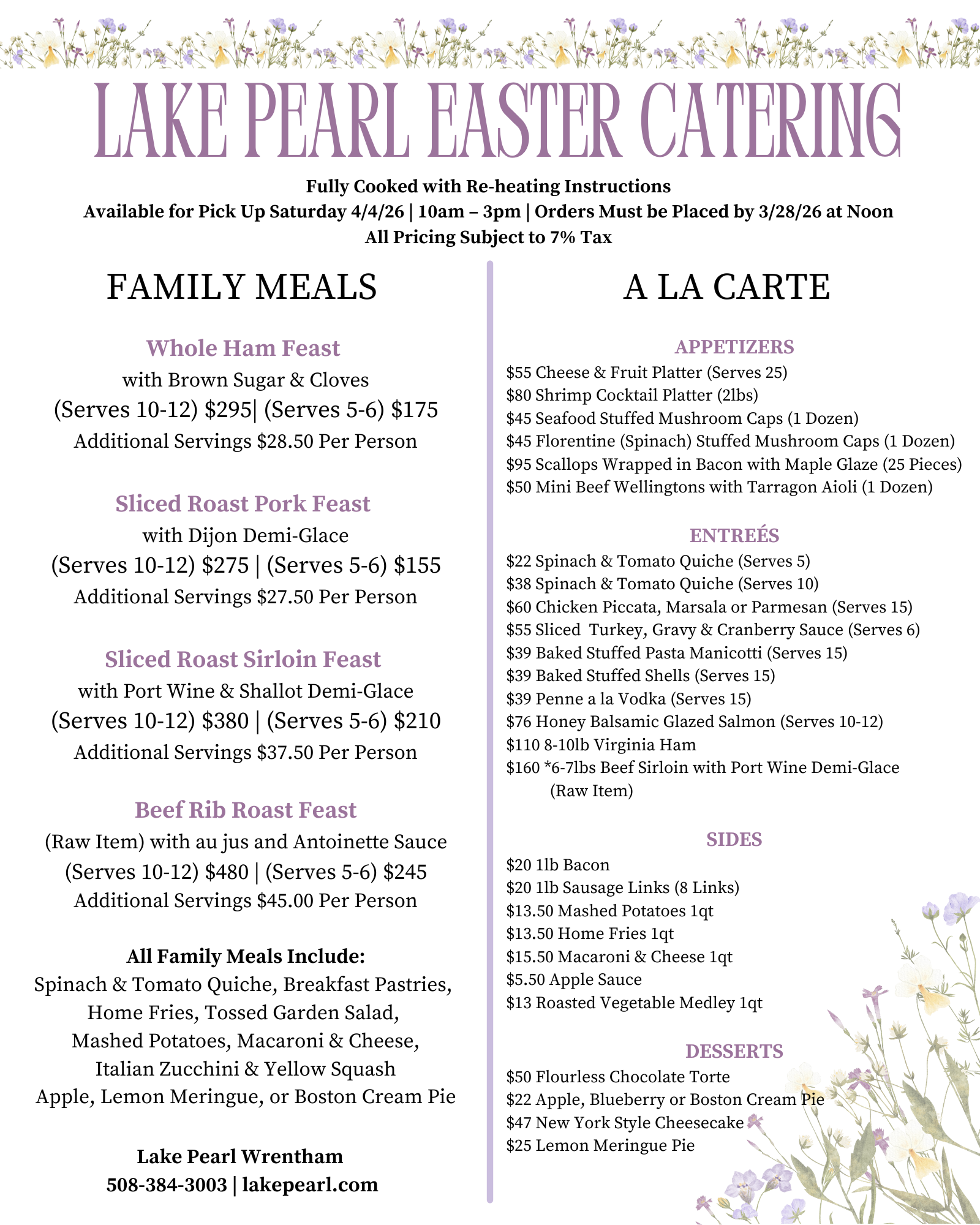 At Lake Pearl, we understand that special occasions deserve exceptional catering. Our team is experienced in providing catering for holidays and special events, ensuring a memorable experience for you and your guests.